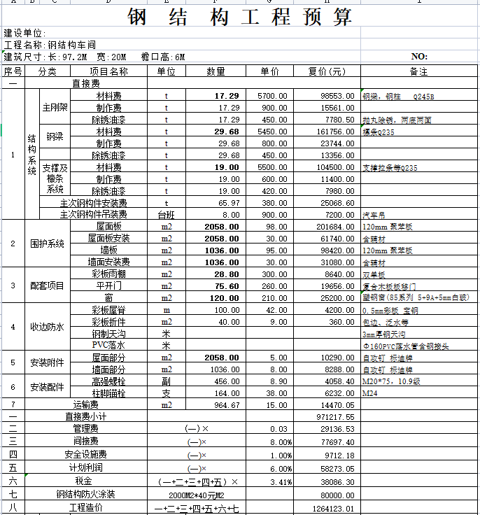 首先要会算量最基本的就是会看懂图纸理解图纸的设计意图。第四步,全部材料统计完成以后就可以计算出材料费、工厂制作费、安装费、油漆费、运费等,再加上其它的间接费就组成了钢结构预算清单。